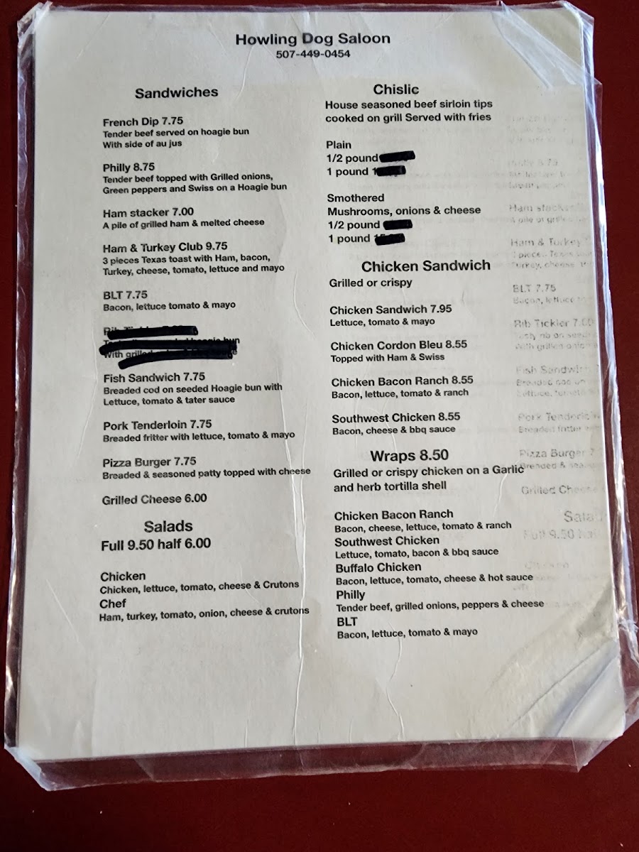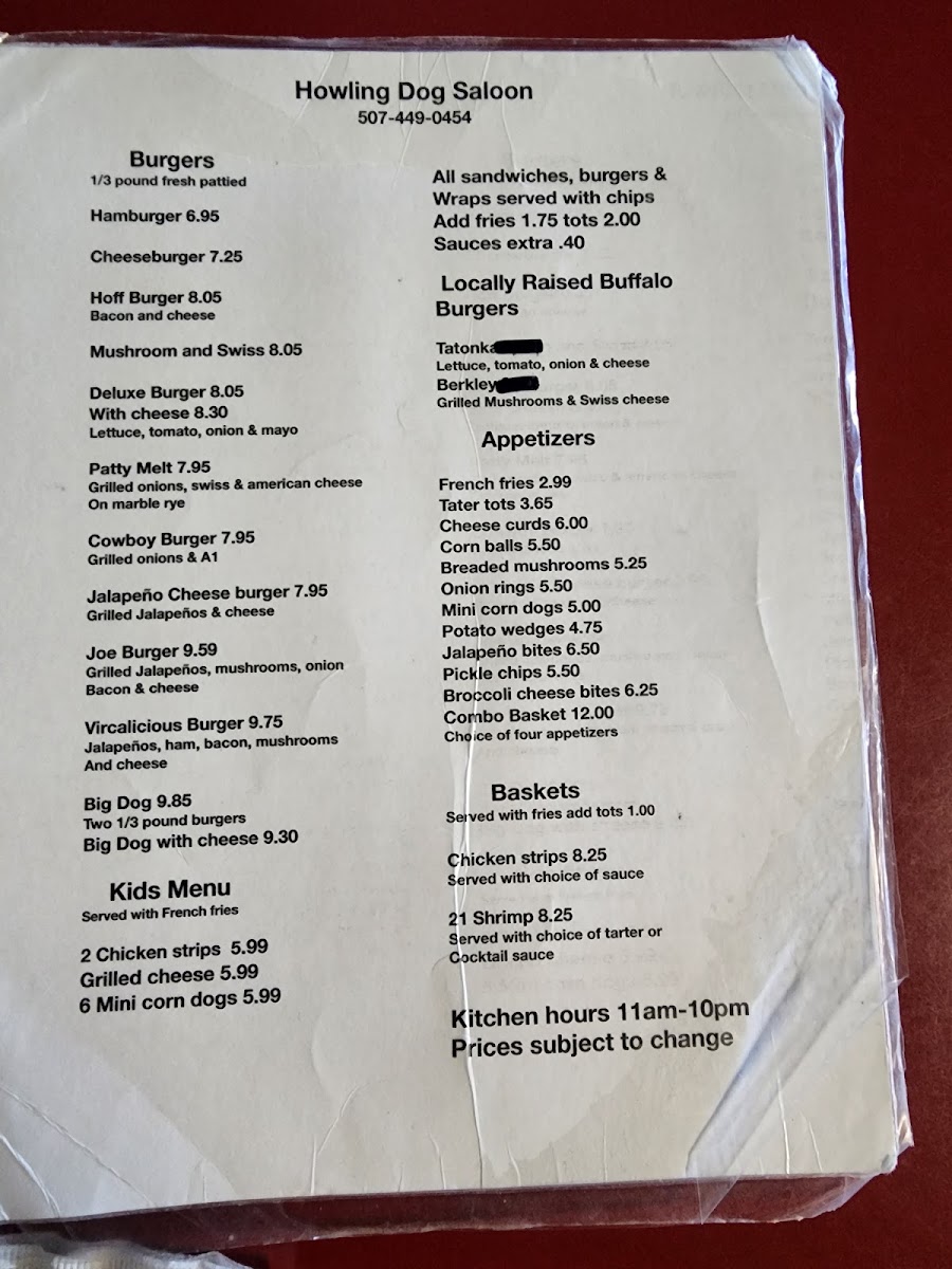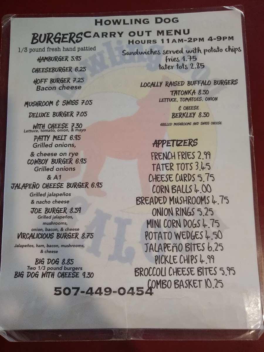 Howling Dog Saloon Menu